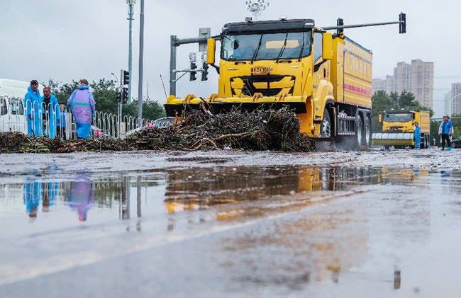 今年会集团派出50余部大型机械车辆赶赴门头沟区清淤
