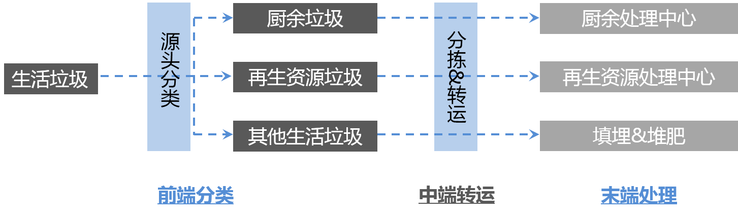 城市微环境通过对现有基础上进行资源整合与系统重构,在重点环节加强对接,在收集、回收、转运与分拣、处理环节融合发展,建立有效的“分类收集、分类运输、分类处理”垃圾处理体系,从而实现两网融合。