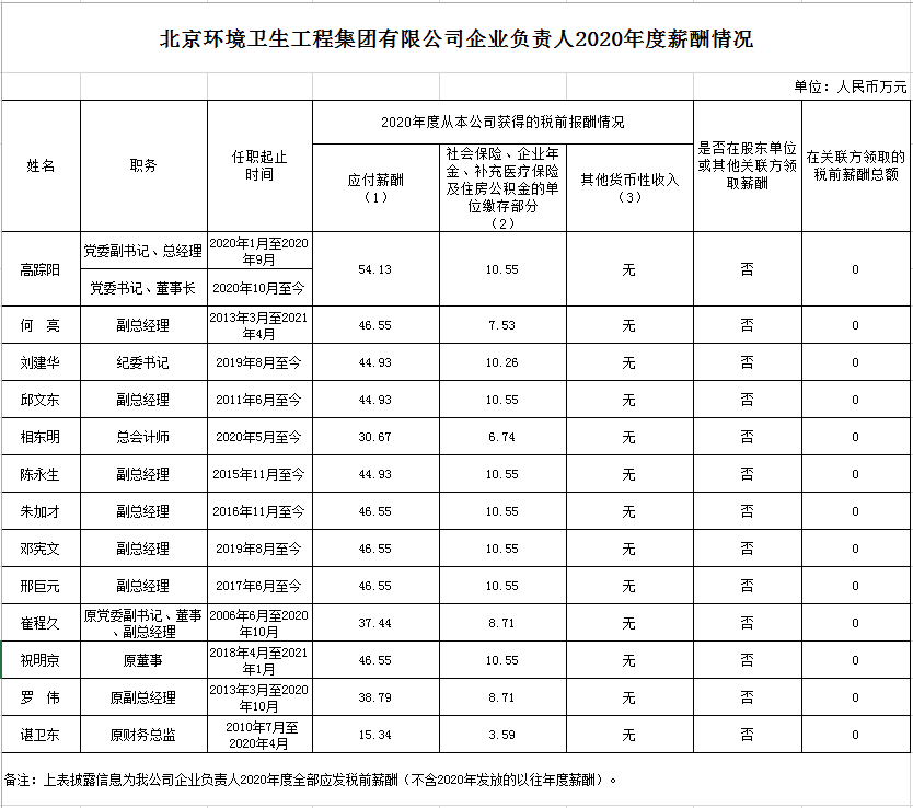 今年会工程集团有限公司企业负责人2020年度薪酬情况