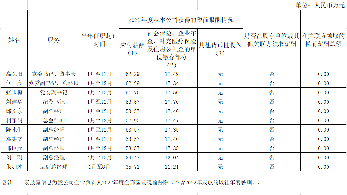 今年会工程集团有限公司企业负责人2022年度薪酬情况