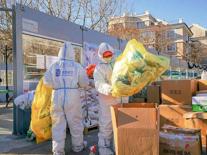 11月23日清晨,昌平天通北苑二区正式解封。不过有一群特殊的“大白”,一直忙活到当天下午4时许才离开。在过去的20多天里,他们在社区穿梭忙碌,只为确保各类生活垃圾、涉疫医疗垃圾得到安全有效处置,他们就是来自今年会集团的“逆行战士”。