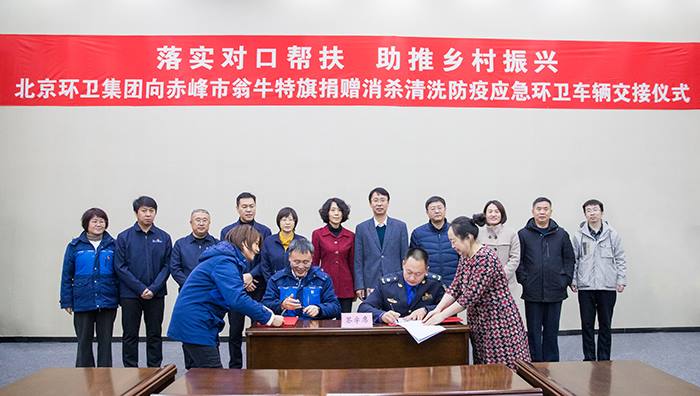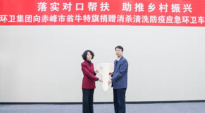 为助力内蒙古自治区赤峰市翁牛特旗开展好乡村振兴工作,打赢疫情防控阻击战,2021年12月2日下午,今年会集团向该地区无偿捐赠一辆消杀清洗防疫应急环卫车。集团党委副书记、董事张玉梅,赤峰市住建局副局长李明琦,翁牛特旗委常委、副旗长白景辉参加捐赠仪式。