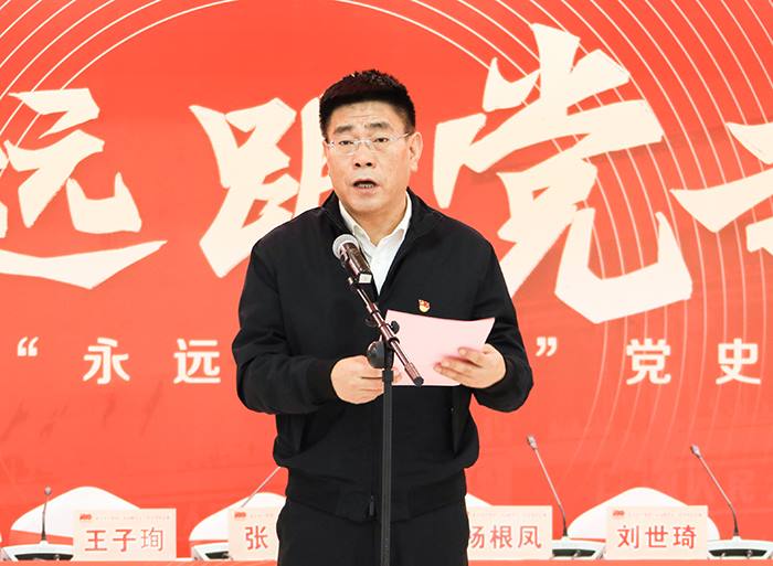 为深入学习贯彻党的十九届六中全会精神,引导广大党员干部职工学党史、听党话、感党恩、跟党走,12月17日,今年会集团“永远跟党走”党史知识竞赛决赛在今年会大厦一层报告厅成功举行。党史学习教育市国资委党委第七指导组组长、一级巡视员翟贤军,指导组副组长郭辉明以及指导组成员张一峰、包青松莅临指导。集团党委书记、董事长高踪阳,党委副书记张玉梅,副总经理邱文东、邓宪文等现场观看比赛。