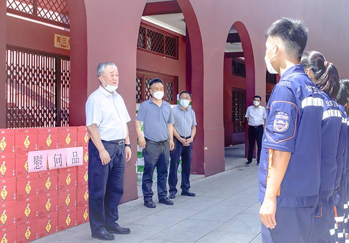 8月5日上午,北京市城市管理委员会党组书记、主任陈清,副主任张岩、徐利一行到集团所属北京机扫公司天安门环境服务中心看望慰问烈日下奋战在一线的环卫工人,为大家送来了慰问品。集团党委副书记、总经理何亮及相关部室负责人陪同慰问。
