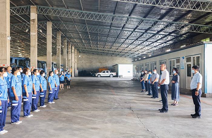 孙宇同志代表市总工会对坚守在一线的环卫职工表示亲切慰问,感谢大家一直以来在保障城市运行、疫情防控、垃圾分类工作中的辛勤付出。孙宇同志表示,环卫集团广大干部职工工作任务很重,在高温天气下完成工作的同时,更要保重身体。工会作为职工的“娘家人”,会给大家在工作和生活中提供必要保障,随时为大家解决困难。目前高温天气还在持续,希望大家做好防暑降温工作。