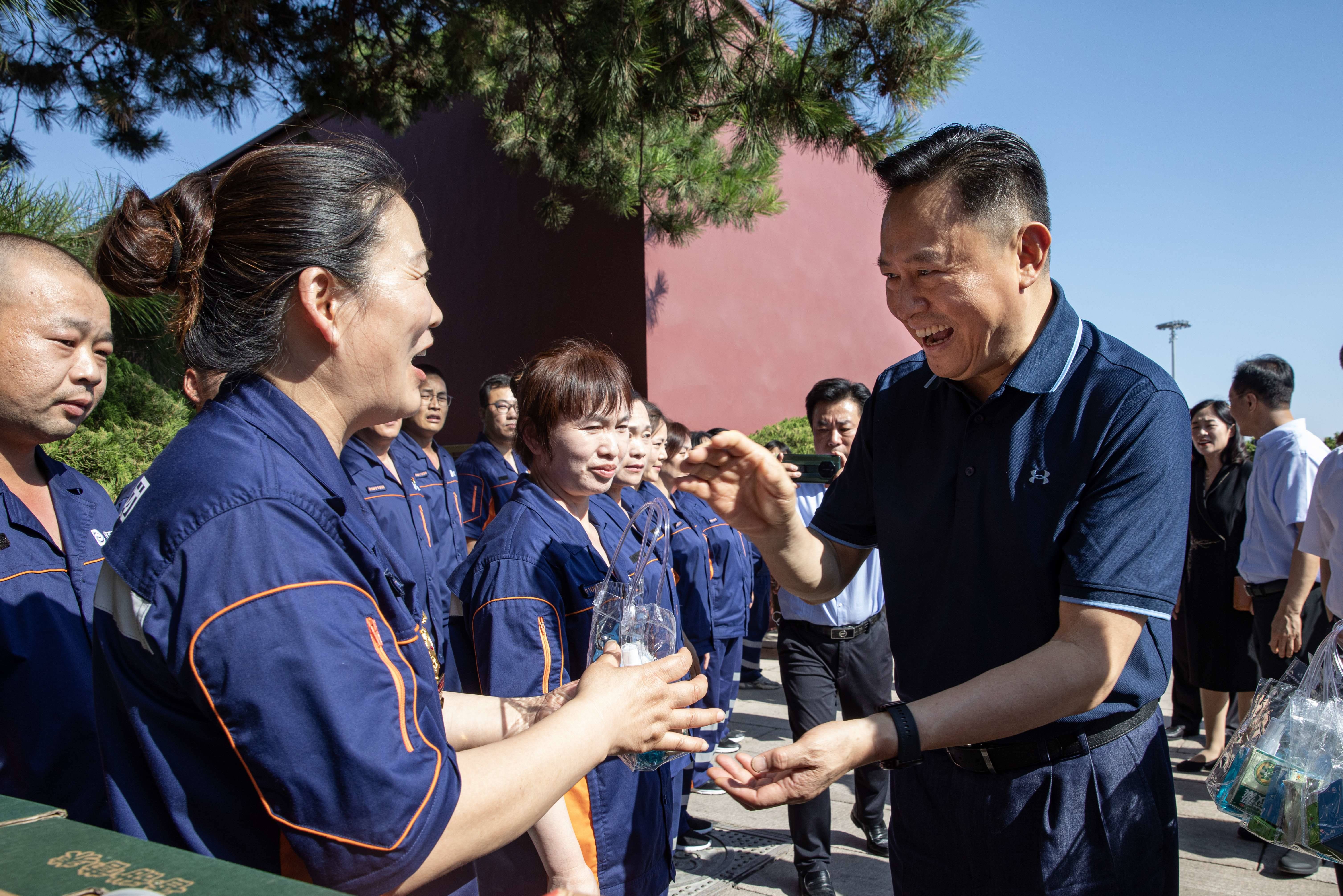 盛夏送清凉,关爱沁人心。徐留平一行走进天安门环境服务中心,仔细查看了环卫职工的工作环境,听取了集团党委书记、董事长高踪阳的工作介绍,向炎炎夏日中坚守岗位的环卫职工致以诚挚敬意。他同时强调,要不断提高服务职工的精准性和可及性,加强对高温作业劳动者的关心关爱,积极开展“送清凉”活动。